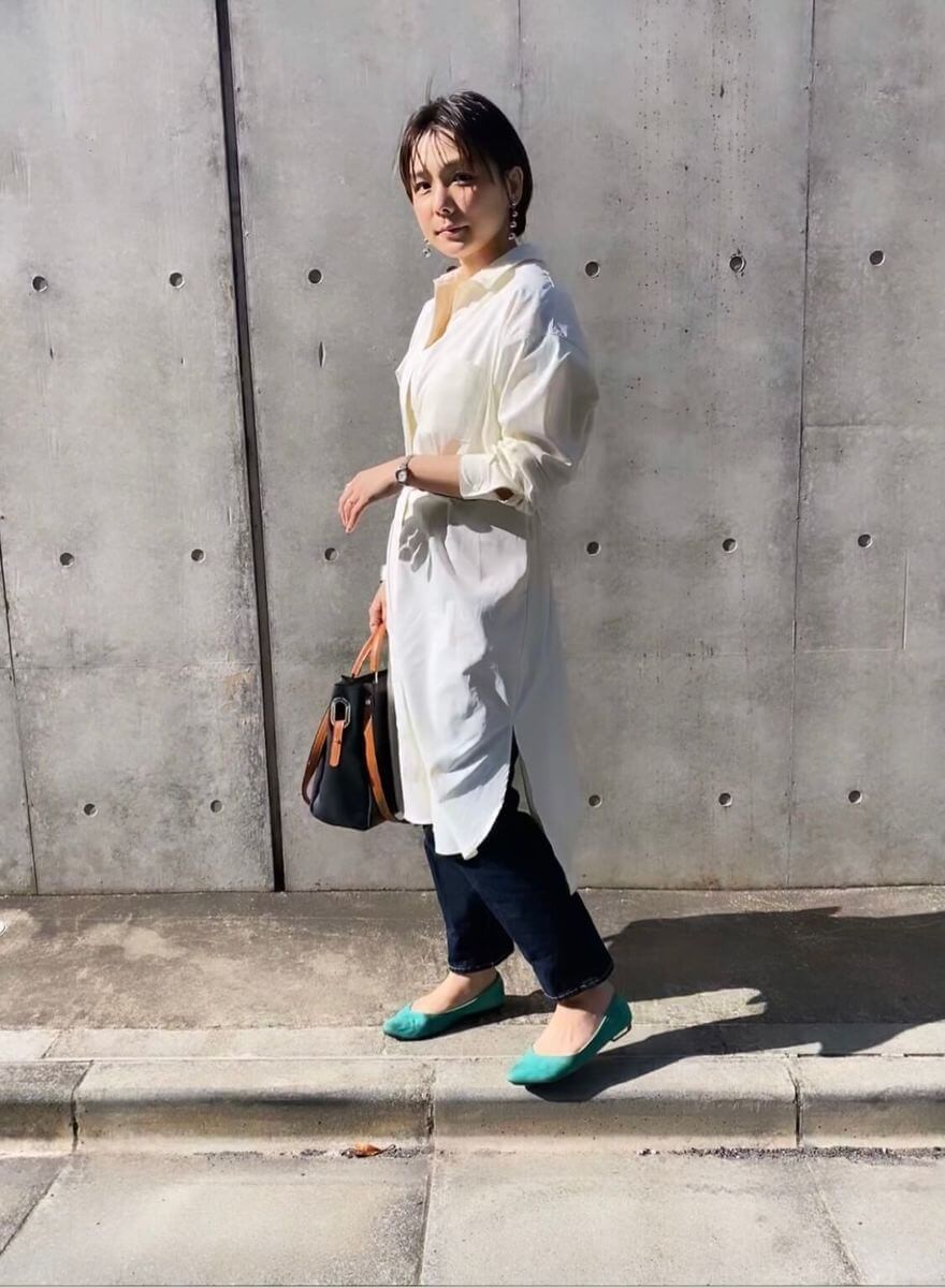 “保護者会スタイル”は、きちんと感と清潔感を両立させると好印象。「シャツワンピ+デニム」の組み合わせなら、軽やかでかしこまりすぎず、程よく肩の力が抜けた最強スタイルが完成します。