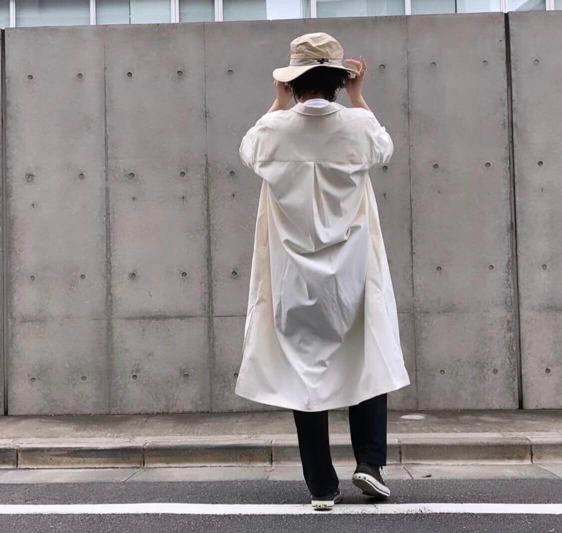 ここ最近、定番化したバケハは、投入するだけで、モノトーンコーデの鮮度をアップ。日焼け対策としても活躍します。