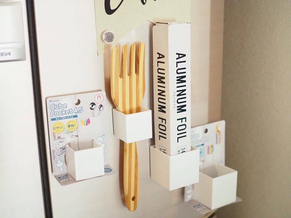 マグネットがくっつく玄関ドアにくっつける事もできるので、傘や印鑑ケースの置き場にしたりなどキッチン以外でも役立つ便利アイテムです。