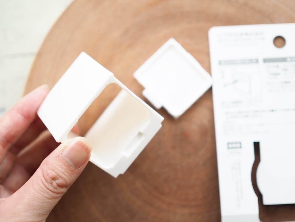 一箇所に穴が開いている正方形のボックスで、サイズは4.5cmと6.0cmの2タイプがあります。