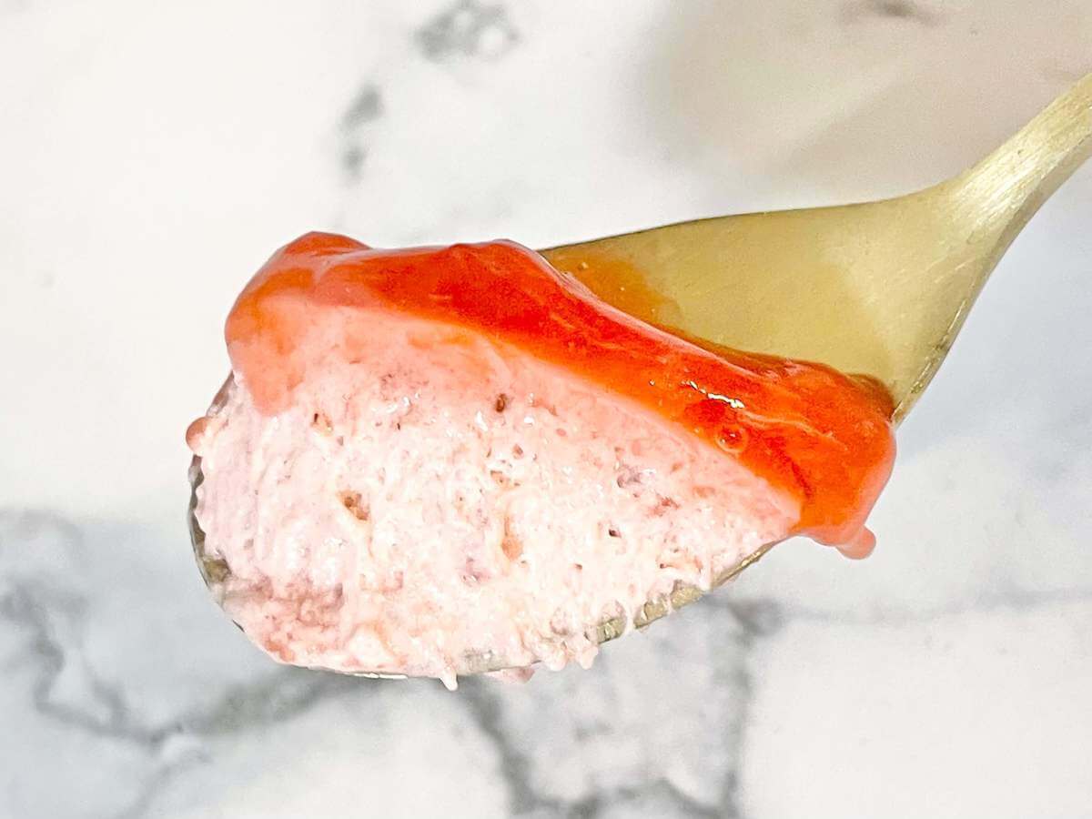さわやかな酸味で甘酸っぱいストロベリーソースと混ざると酸味が和らいで食べやすくなります。