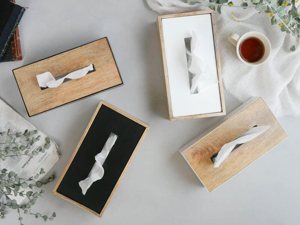 ウッド×アイアンがスタイリッシュなティッシュケースに「ホワイト」が新登場。