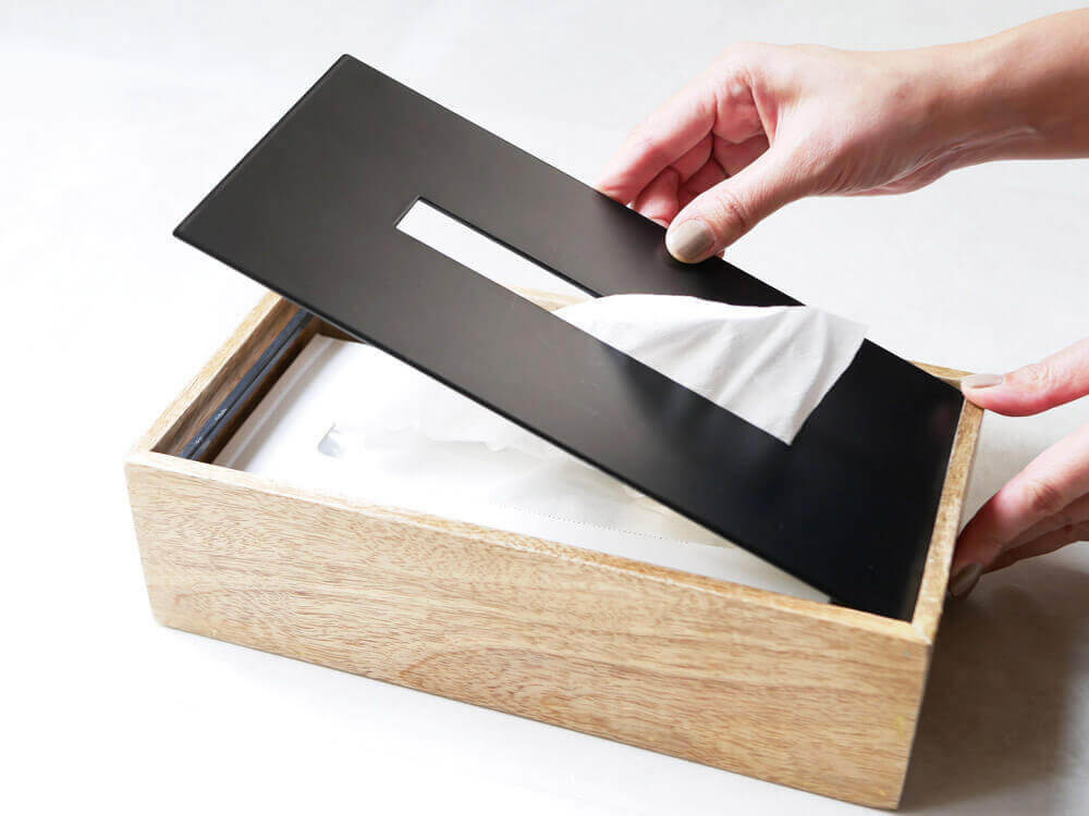 ウッドとアイアンの組み合わせは、様々な雰囲気のお部屋にマッチし、生活感の出やすいティッシュをお洒落に、そして高級感を感じられます。