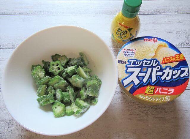 市販のバニラアイスとオクラを混ぜたら完成