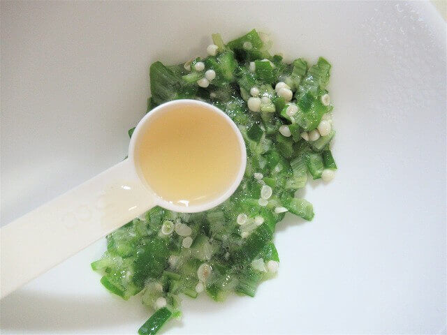 オクラにレモン汁をかけて和えておく