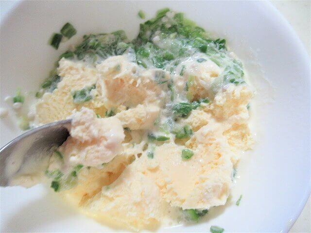 電子レンジから取り出し、できるだけ細かく刻む
