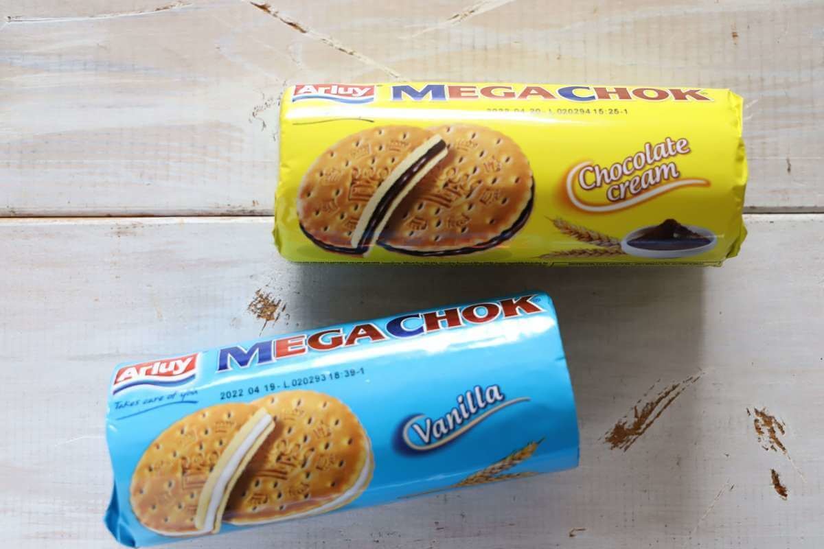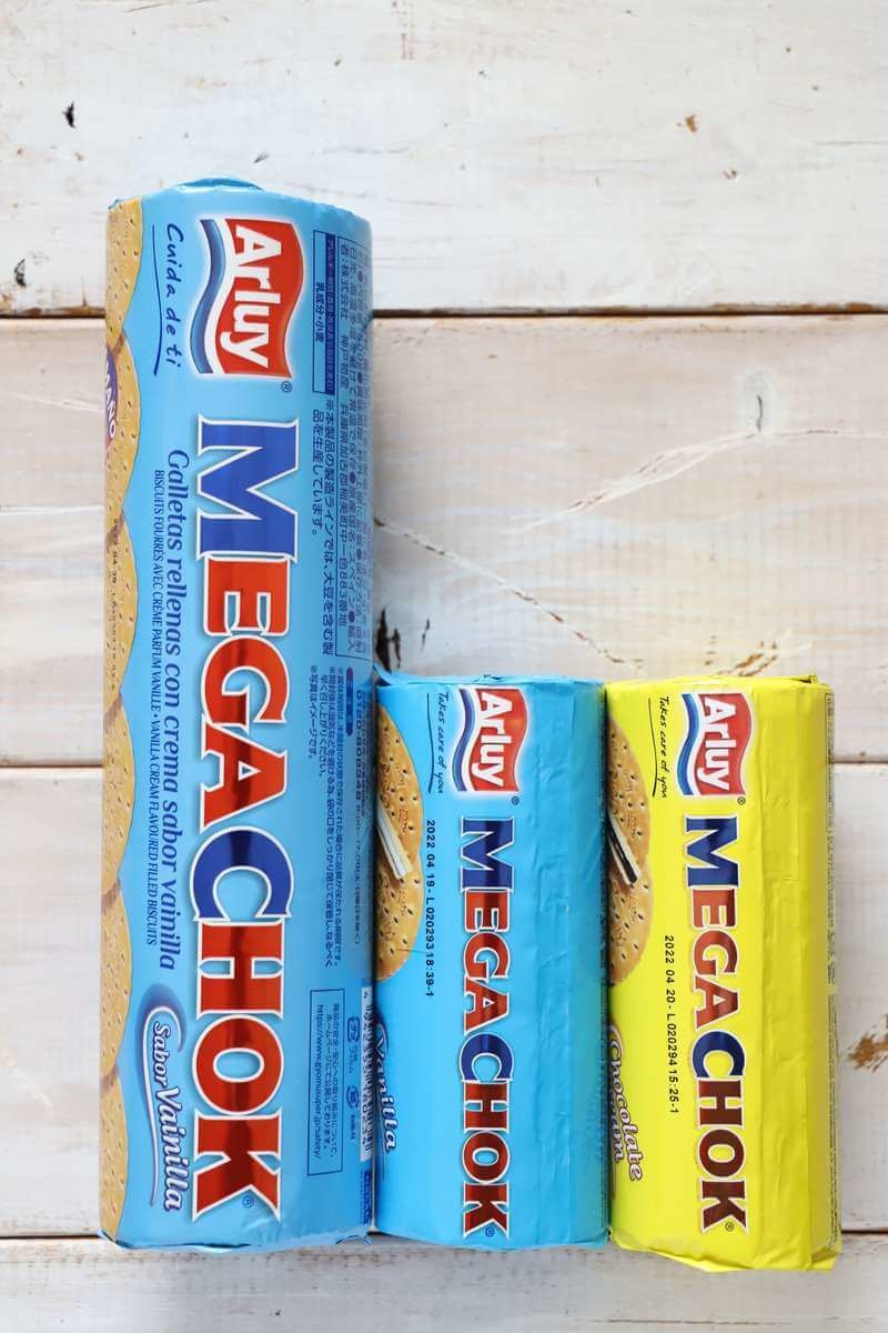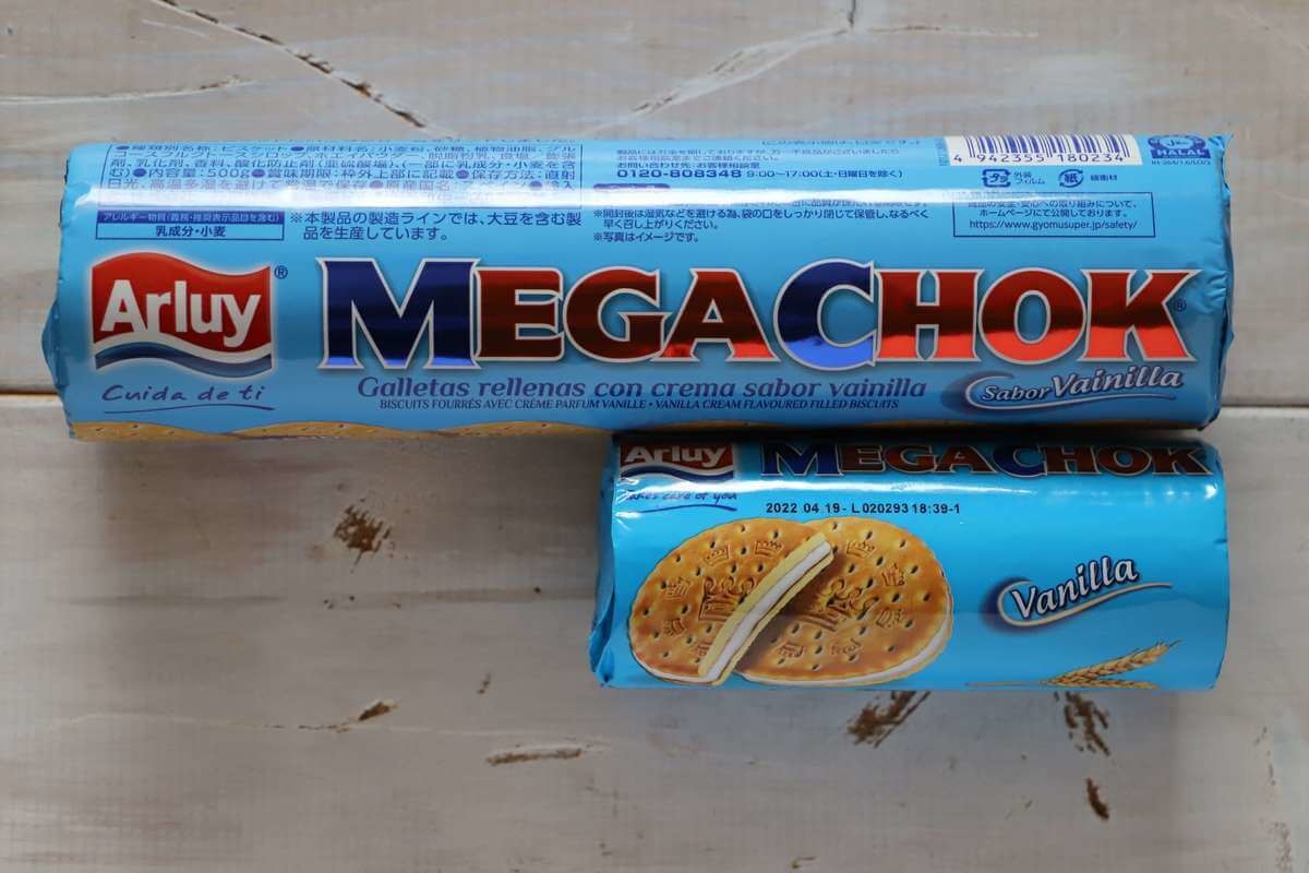 - スペイン産 MEGACHOK バニラ・チョコレートクリーム味 各95円