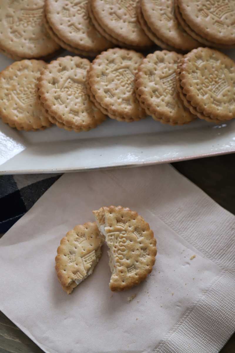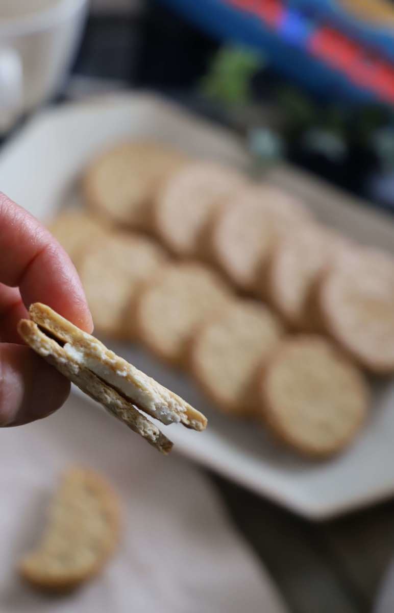 サンドイッチビスケットです。サクサクのクッキー生地が美味しく、我が家でも人気のクッキーです。