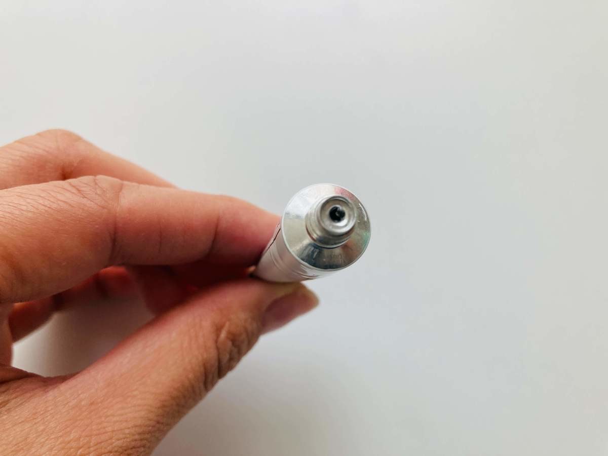 まずは接着剤をキャップ裏の突起で開封してください。中身が飛び出さないように注意してくださいね。
