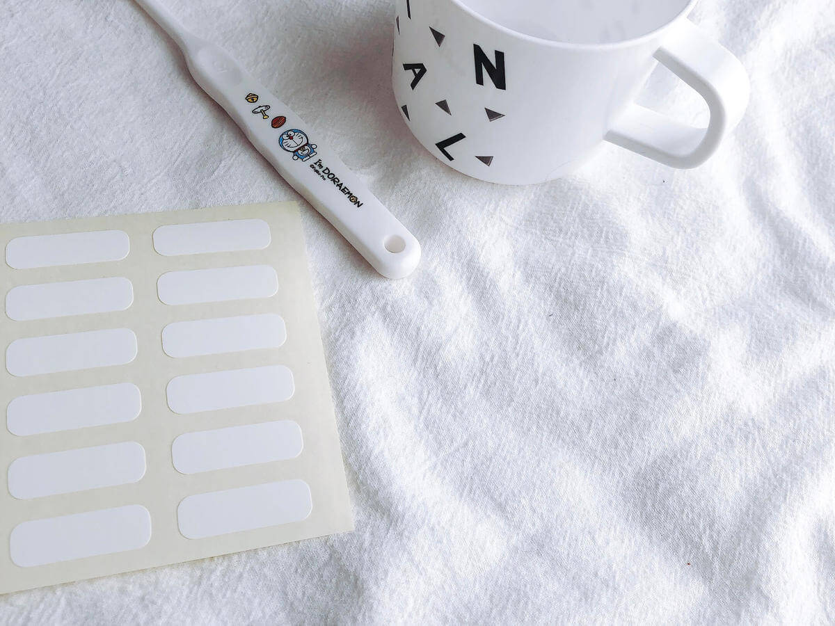 耐水性のラベルなので、コップや歯ブラシなど濡れやすいものもOK!