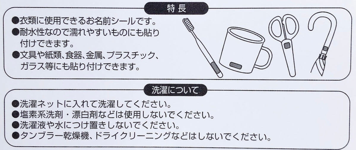 タグだけでなく、プラ食器や文具にも貼れるので、学校用品などにもピッタリです。