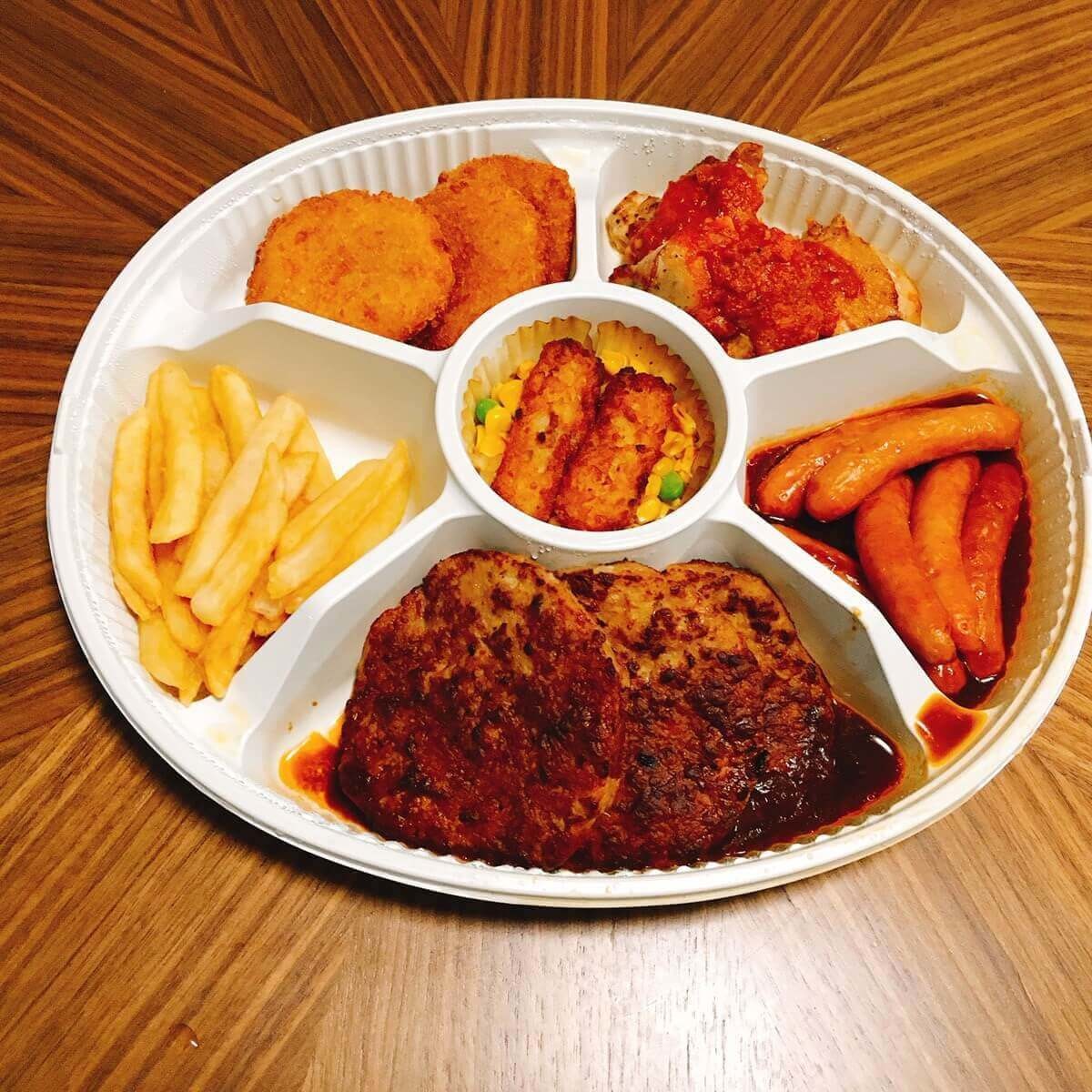 野菜コロッケ、ソーセージ、ハッシュドポテト、フライドポテト、コーンえだまめミックスの5つは、ガストミックスセットと同じです。
