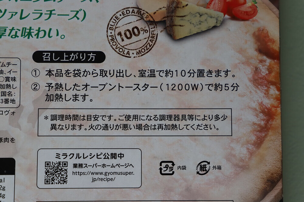 室温に10分置いて、オーブントースター1200wで約5分焼くだけです。