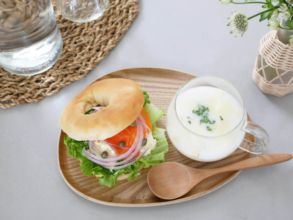 「カップ」にスープ、「プレート」にパンを盛り付ければ、これ一つでカフェのような朝食が完成しますよ♪