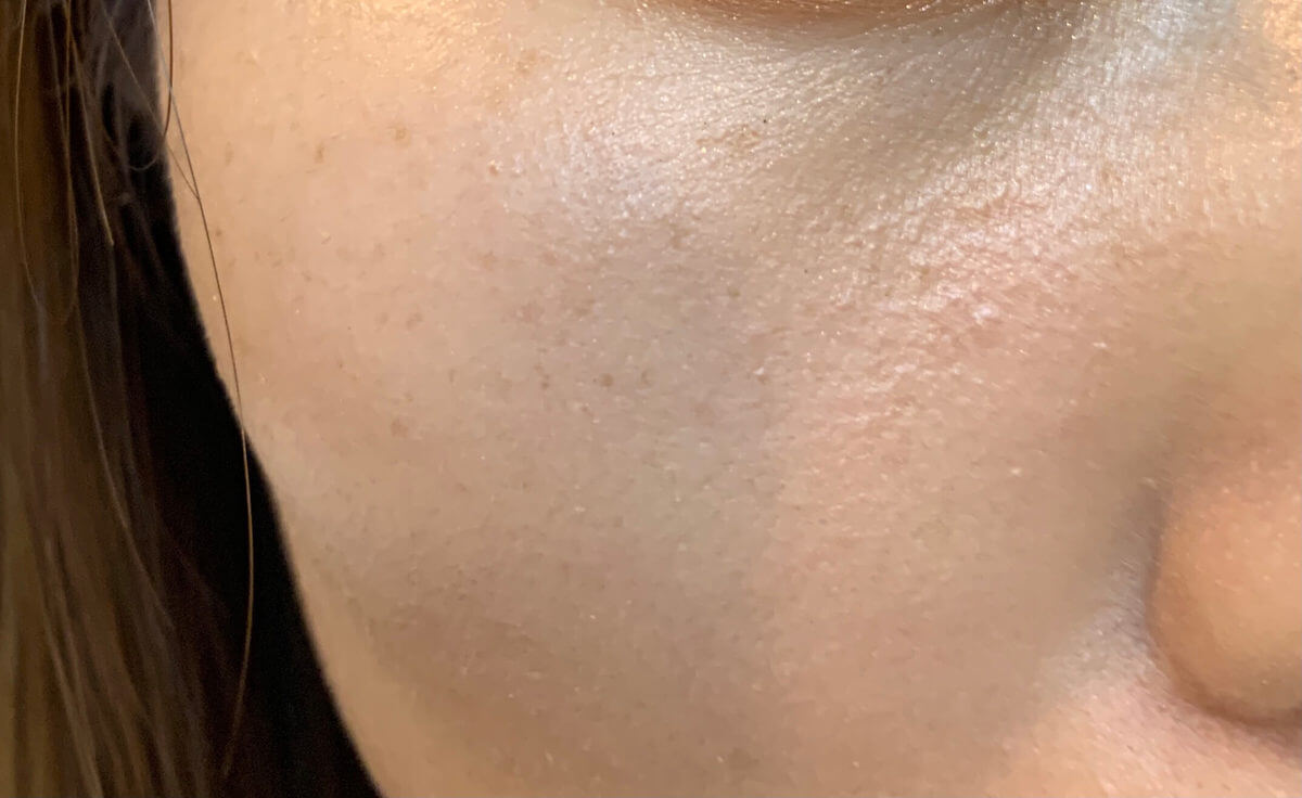 密着感がありますが、乾燥しやすいので肌の凹凸や毛穴・小じわが気になりました。 肌の凸凹や毛穴・小じわ・表情ジワ・シミやソバカスをカバーしたい人には物足りなさを感じるかもしれません。