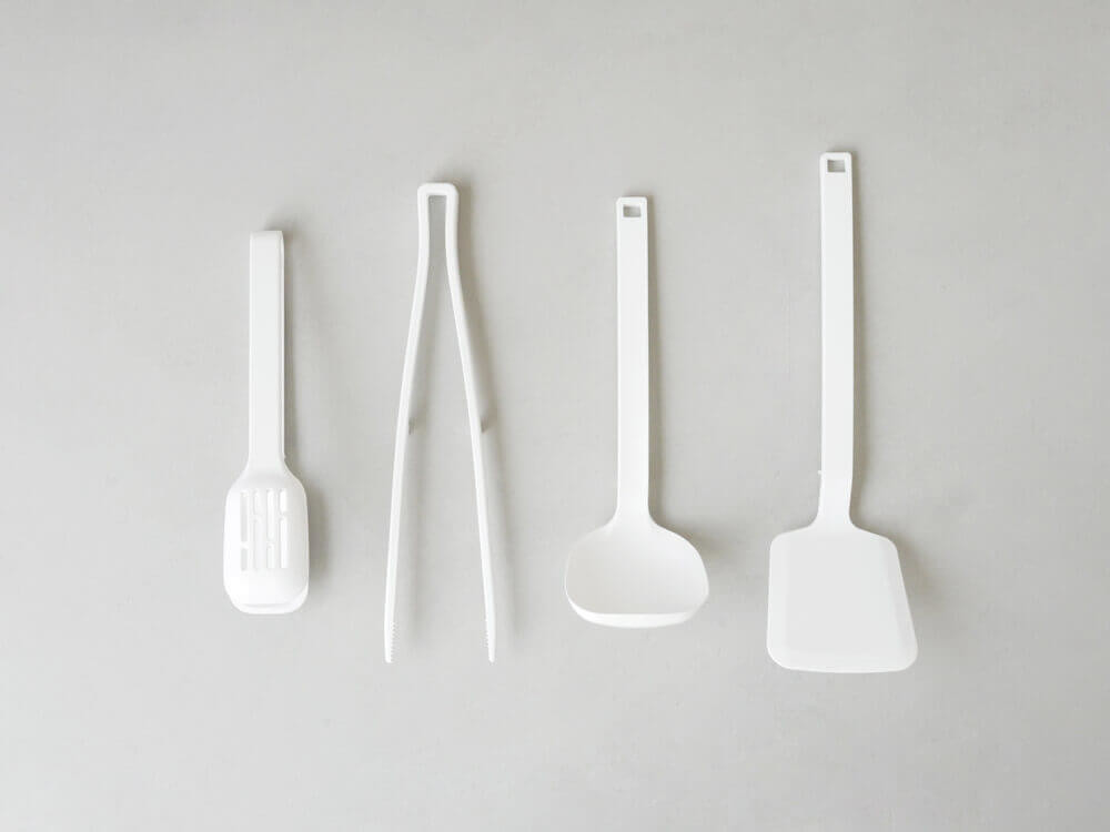 今回ご紹介するのは、「菜箸トング」「フライ返し」「スプーントング」「お玉」の4種類。どれもシンプルで程よく生活感を感じさせないのでキッチンはもちろん、食卓での取り分け時にも活躍してくれますよ。