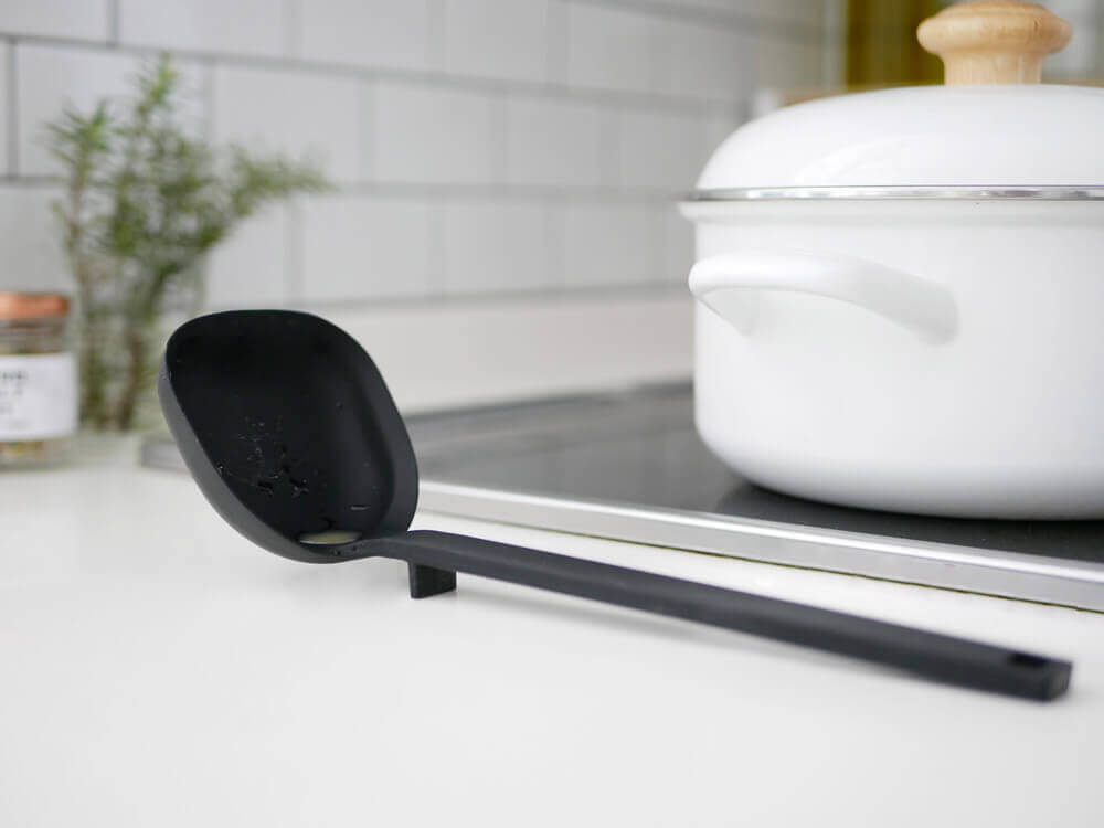カレーやシチュー、鍋物などを最後の1滴まで残すことなく、そしてシリコーン製なので傷つけることなく、スッキリすくえますね。