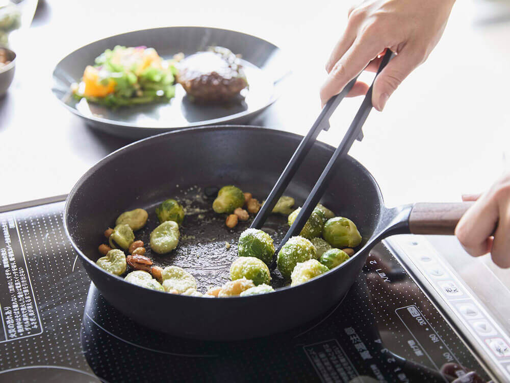 フライパンなどを傷つけずに、菜箸としてだけでなくトングとしても小さな食材も挟んでしっかり掴める便利ツール。
