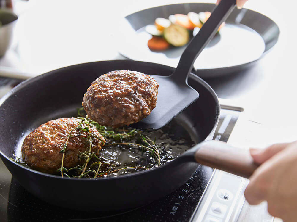 ヘラがしなるので、ハンバーグなどのお肉も簡単にすくい取れます。