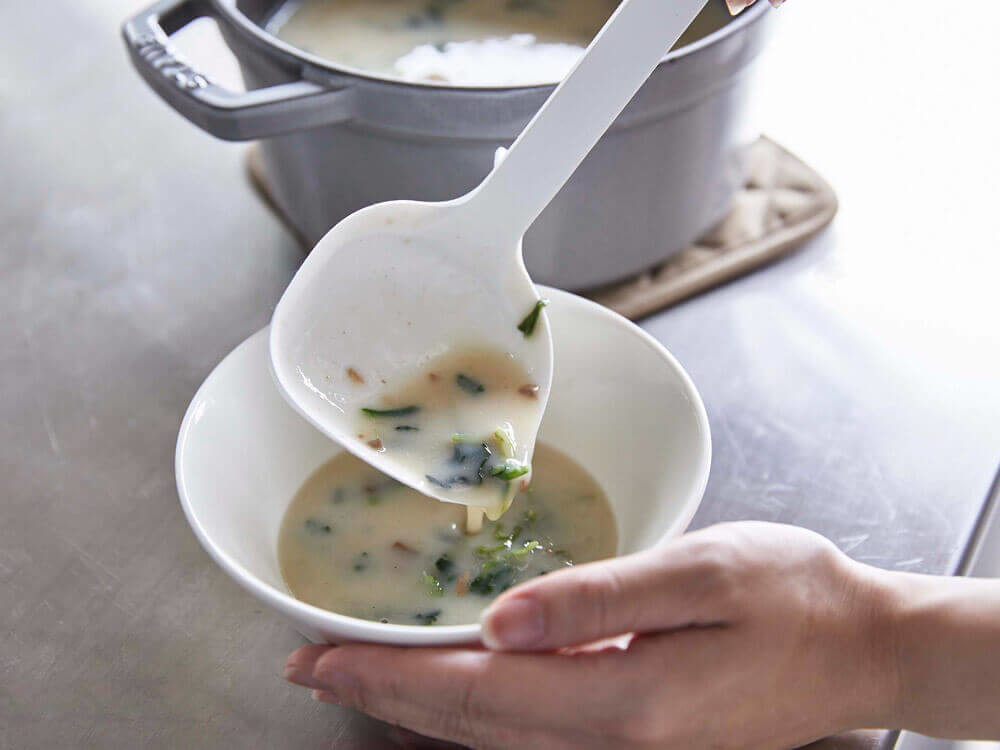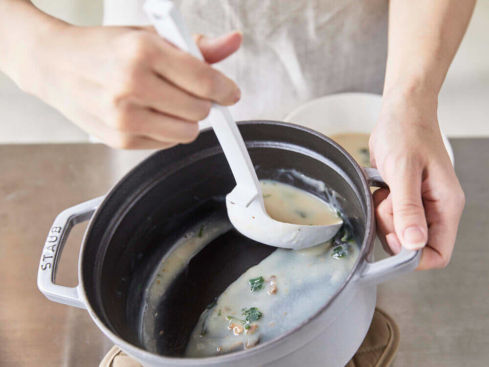深い鍋や汁物に最適な「シリコーンお玉」。