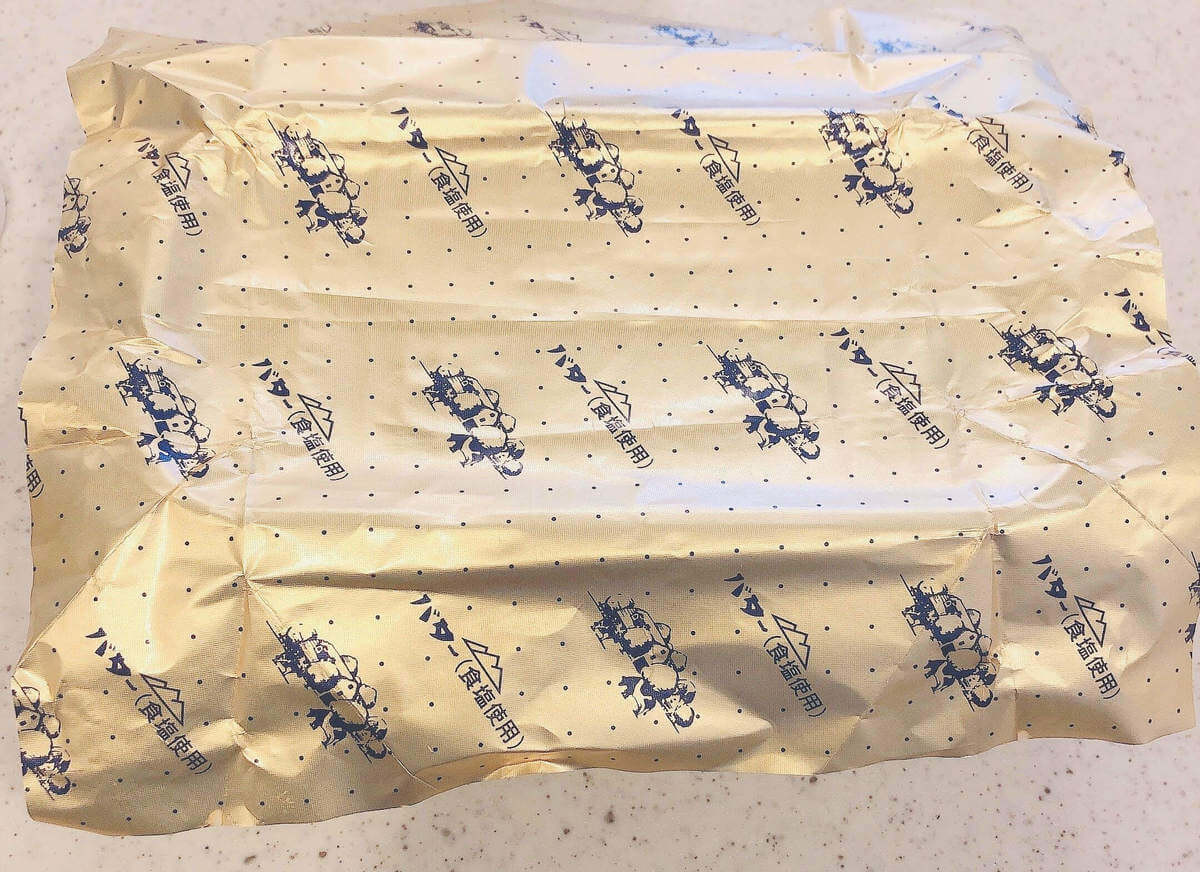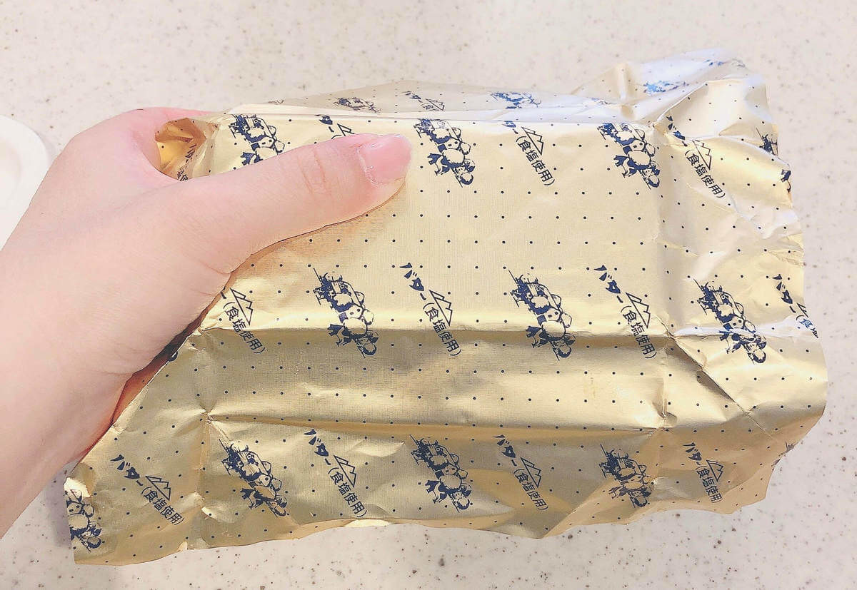 バターの片側の銀紙を外して、くるっとひっくり返します。