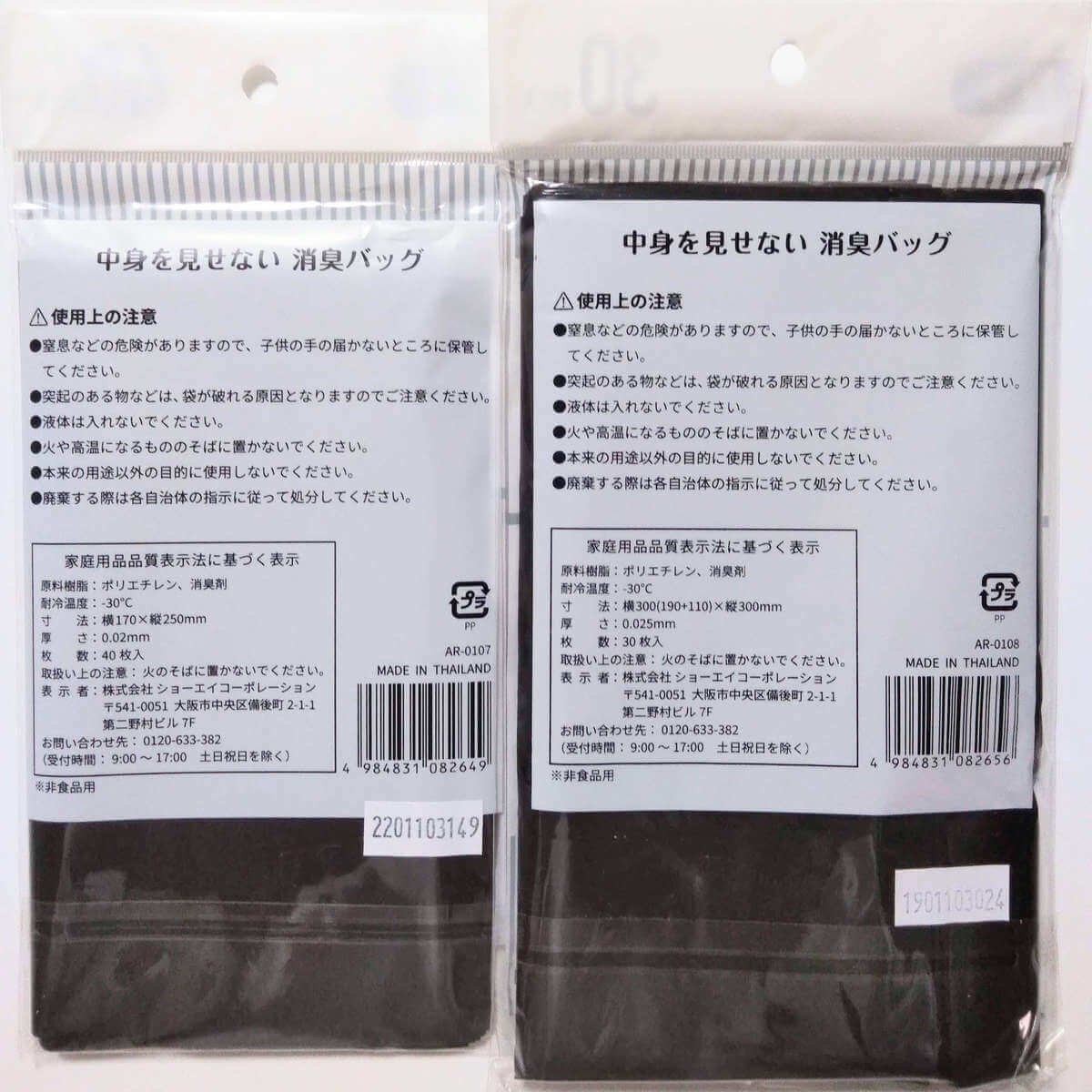 中身を見せない消臭バッグMと並べるとこんな感じです。
