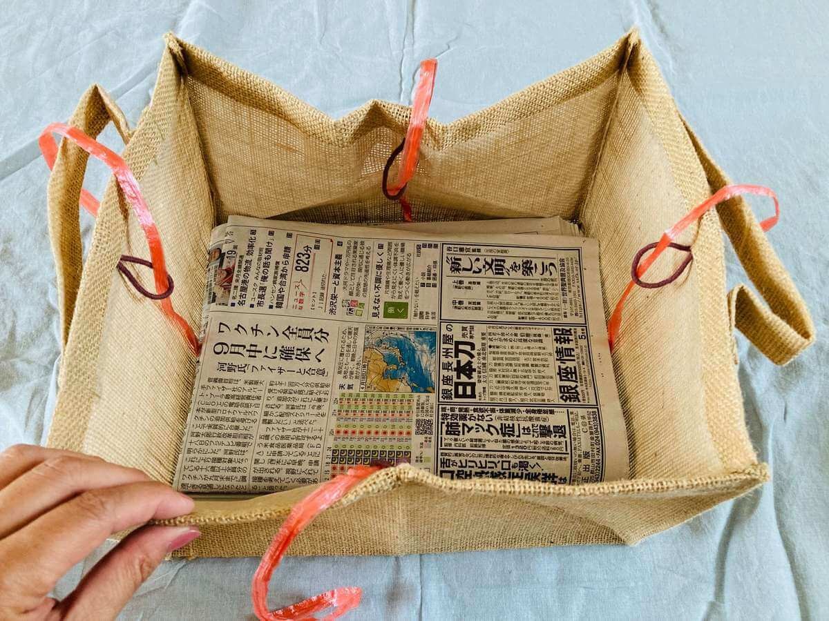 新聞紙がぴったり!たくさん重ねても、途中でくずれる心配がありませんね。