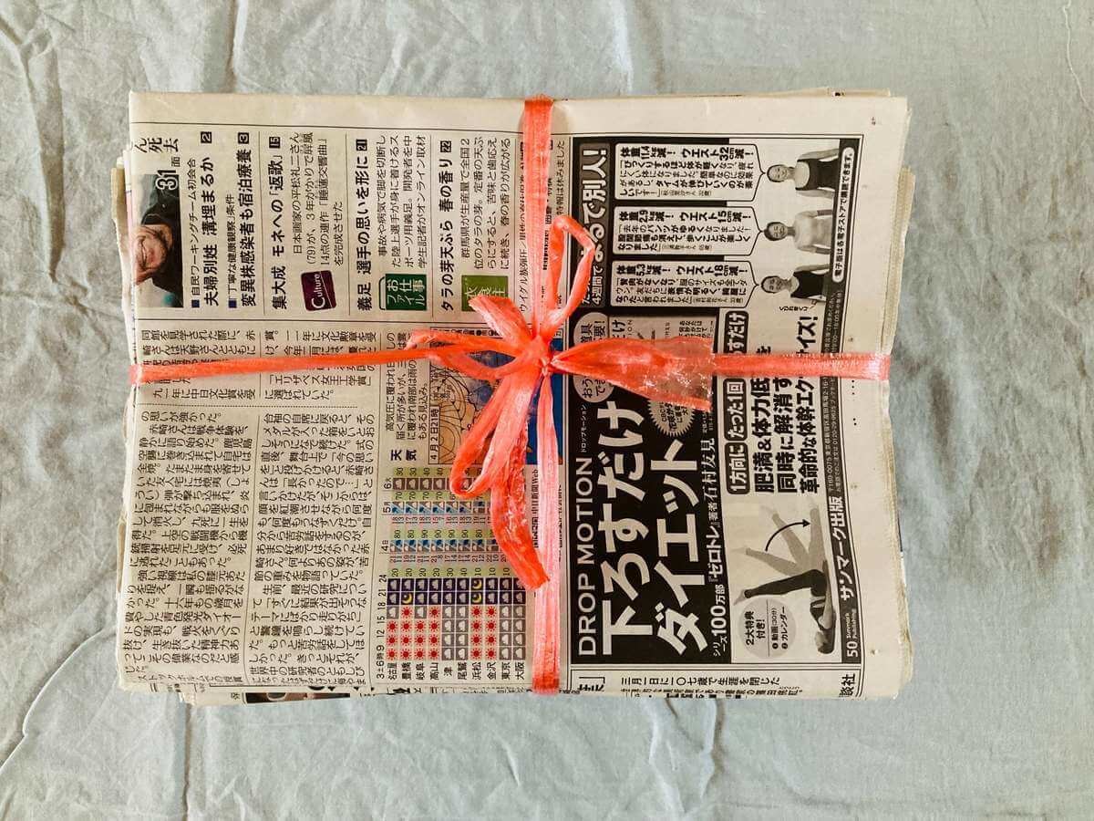 新聞をひもで結ぶのって、意外と大変。途中でぐずぐずと崩れだしたり、ひっくり返せなかったり、不器用さんの天敵なんです。
