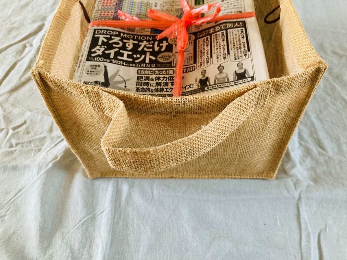 セリアのジュートストッカーは、古新聞や古雑誌を便利に収納できる神アイテム。おしゃれなのもニクイですね!