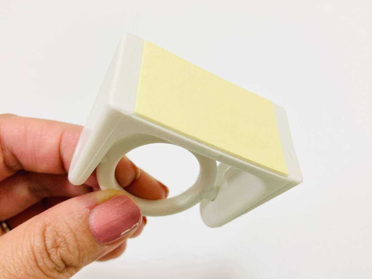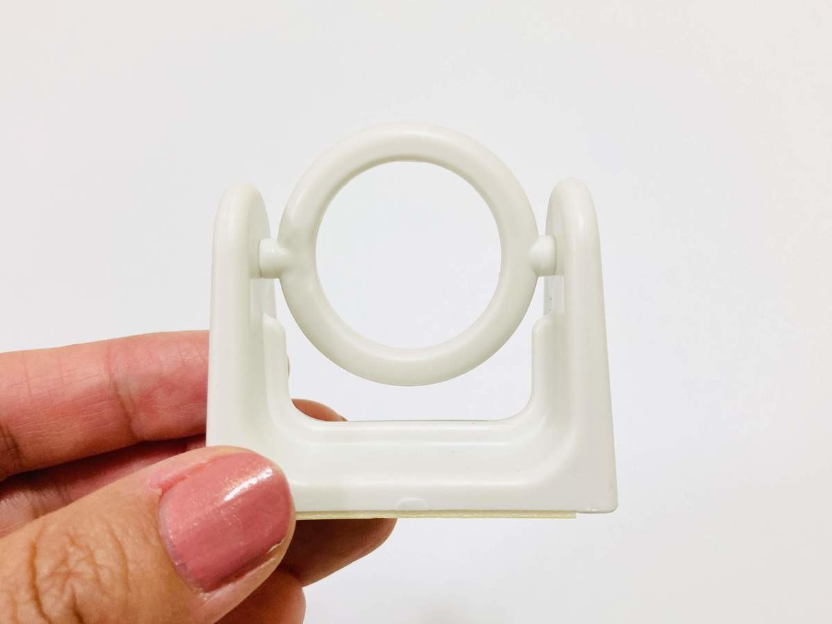 リングが回るメリットはコーナー使いができること。まるで忍者のように張り付きます!洗面所のコーナーで水回りの小物を浮かせても便利です。