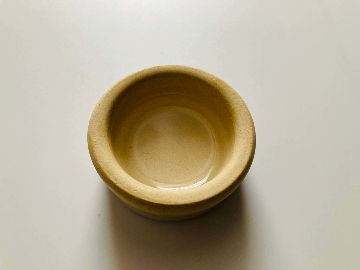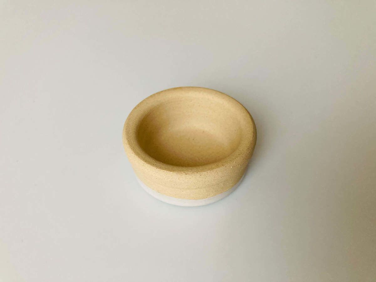 ベージュ色部分はザラザラ、底の白色部分はツルツルとしています。指先に収まる可愛いサイズで、深さはおよそ1.5cmと浅めです。