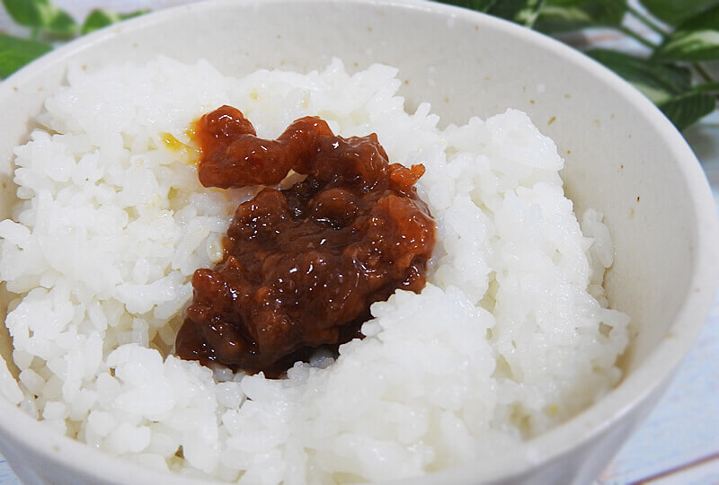 ごはんにかけて食べてみました。前述したとおり、ゆずとコショウの味が前面に出ていますので、ごはんとの相性はイマイチ。