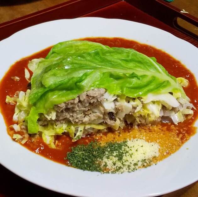 極上トマトソースが千切キャベツとひき肉によくからみ、なじみ、ビックリするほど美味しい!!!