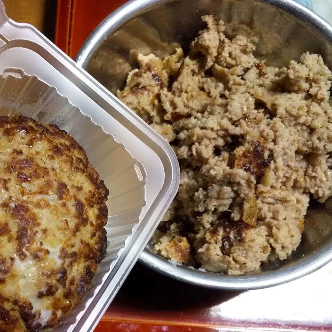 ②冷凍ハンバーグ5個分を600Wで1分レンチンする