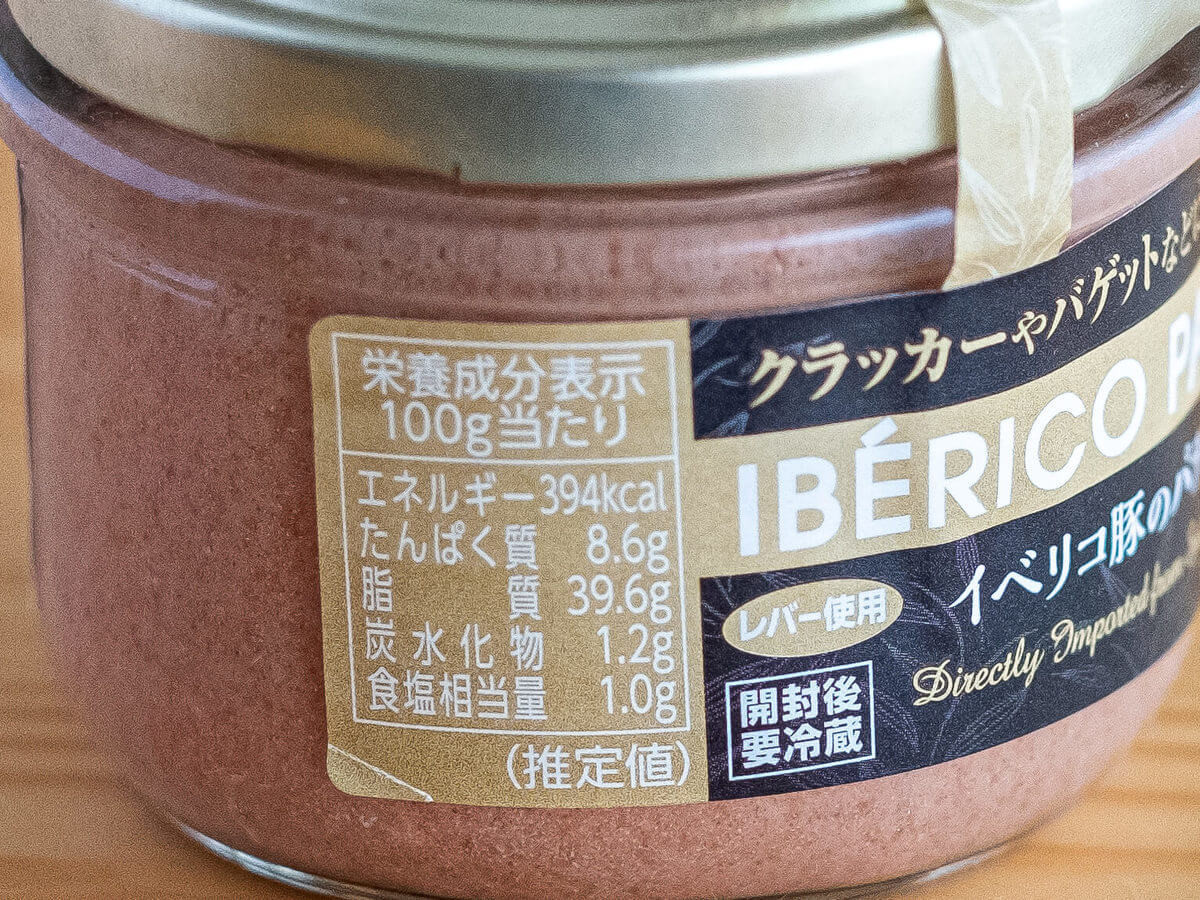 「イベリコ豚のパテ」、気になるカロリーは100gあたり394kcal。イベリコ豚の豚脂やレバーを使用しているだけあり、カロリーは少し高めになっているようです。