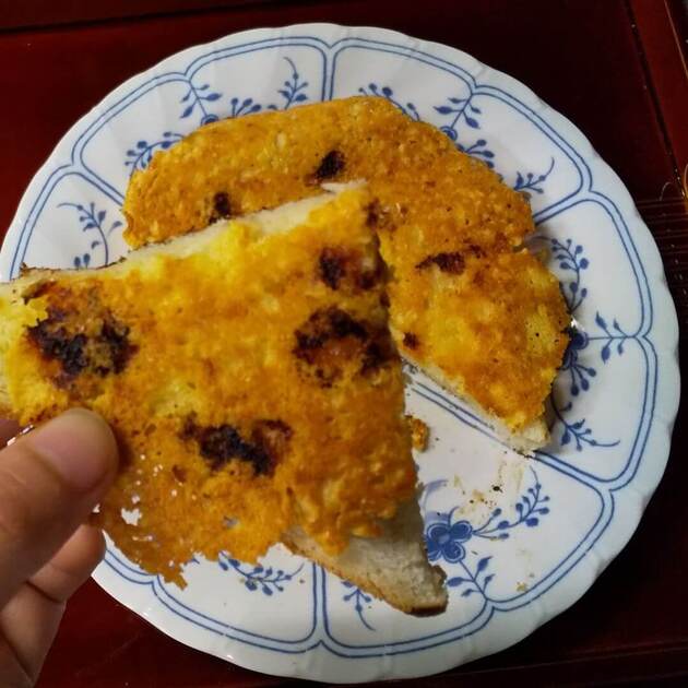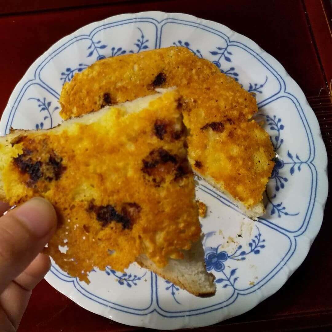 パンはチーズの油を吸って、パサつきがなくパリパリチーズとなじんでいて、油の染みたパンは揚げパンにも似たおいしさがありつつ、食パン感はありません。