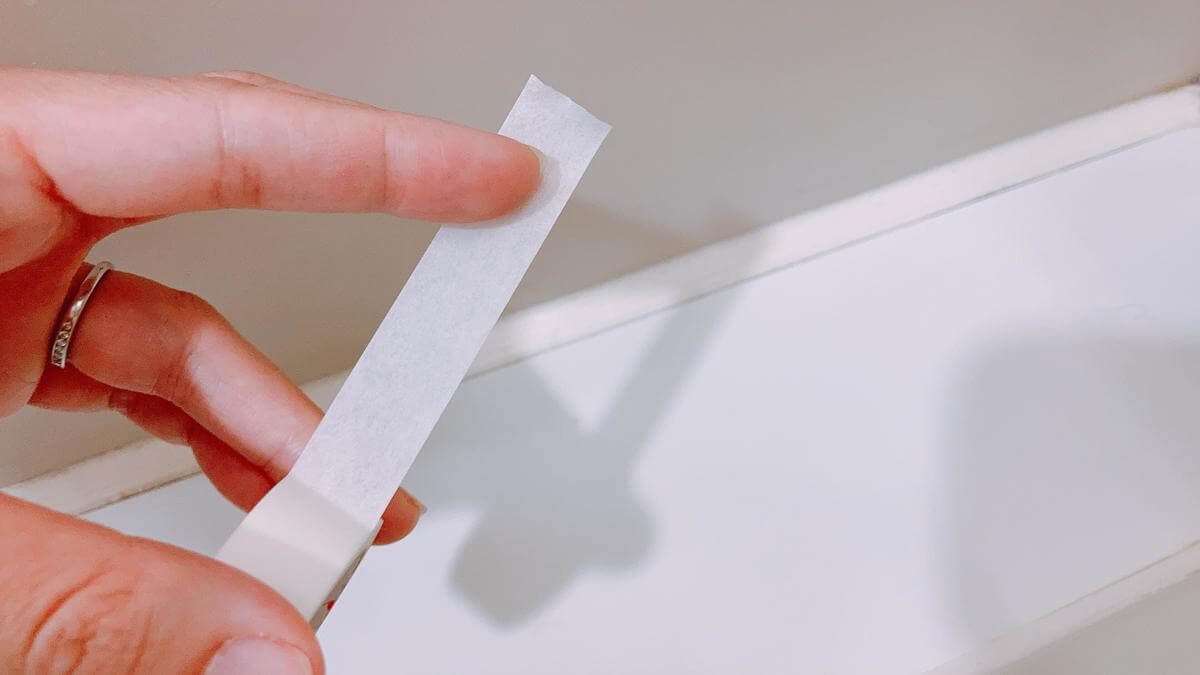 使い方は普通のマスキングテープと同じでペリペリと剥がして、カビの発生しやすい場所に貼るだけ。早速やってみました。