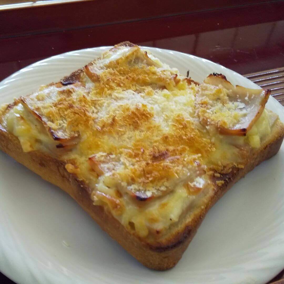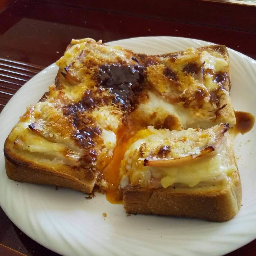 パン粉の焦げ目が美しい「揚げないハムカツエッグトースト」