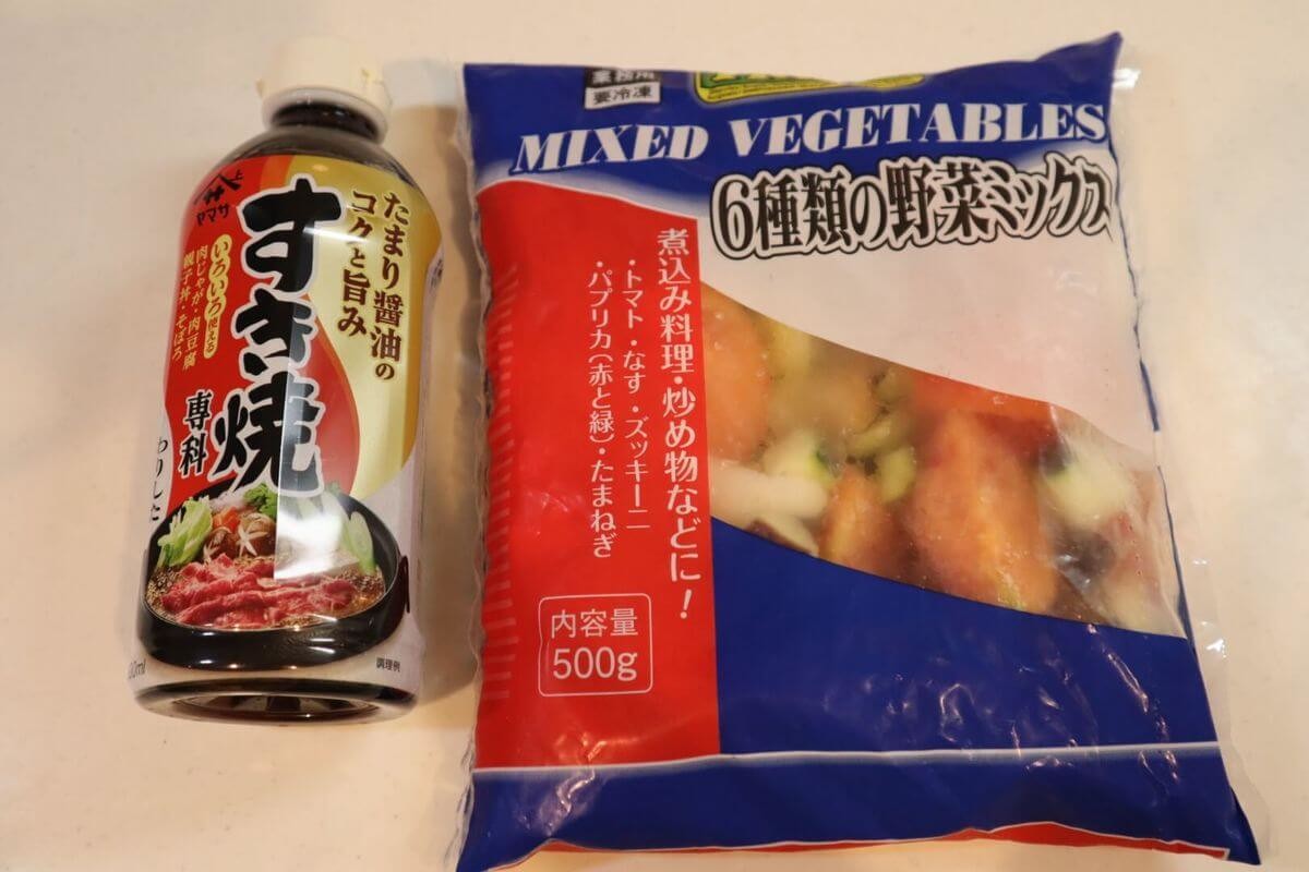 ここでは、2021年4月19日の放送で紹介された業務スーパー「6種の野菜ミックス」を使った「ラタトゥイユ牛丼」を使って作ってみました。
