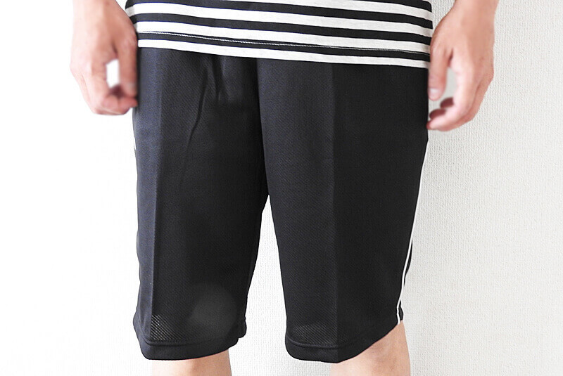 そして、ハーフパンツ499円(税込)。上下合わせて898円(税込)の激安コーデが完成しました。何度か洗濯してみましたが、洗濯によるダメージがひどいとも感じず。少なくともワンシーズンは耐えられるはず……!