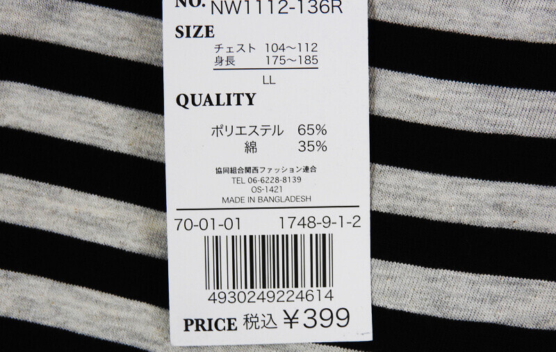 夫にトライアルで買った衣類を着用してもらいました。まずは、ボーダーのTシャツ399円(税込)