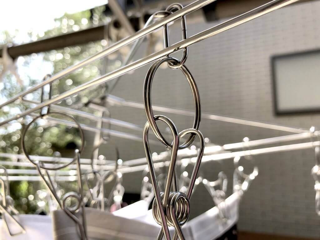 そこでわが家では、劣化しにくく見た目も美しい、ニトリのステンレス製のピンチハンガーを使っています。