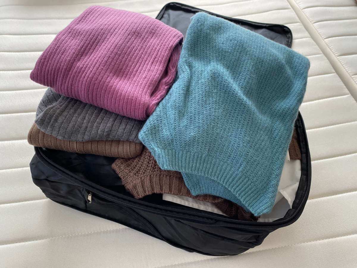Lサイズ1枚あれば、ワンシーズン分のニットがすっきり収納できます。また、「圧縮バッグに入る分だけ来シーズンに持ち越す」など、ルールを決めれば、服の無駄買いも防げで一石二鳥です♪