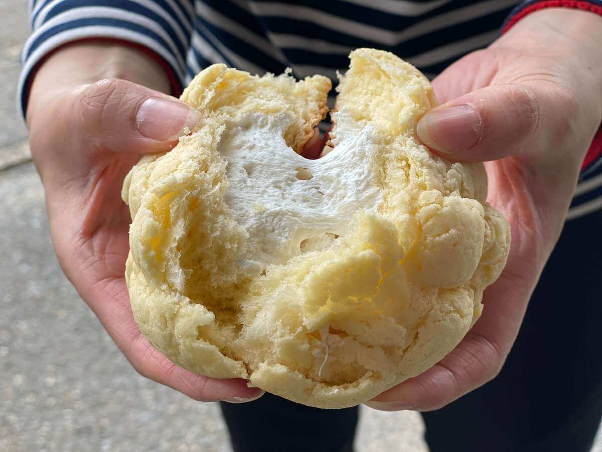 見た目はメロンパンそのもの!中にはミルクホイップクリームが入っています。