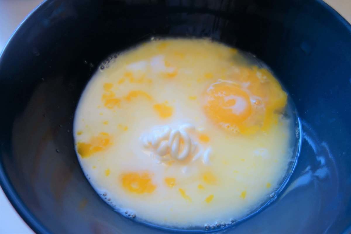 ボウルに【A】を入れて、しっかり混ぜ合わせます。マヨネーズを加えることで、卵がふわふわに仕上がります!