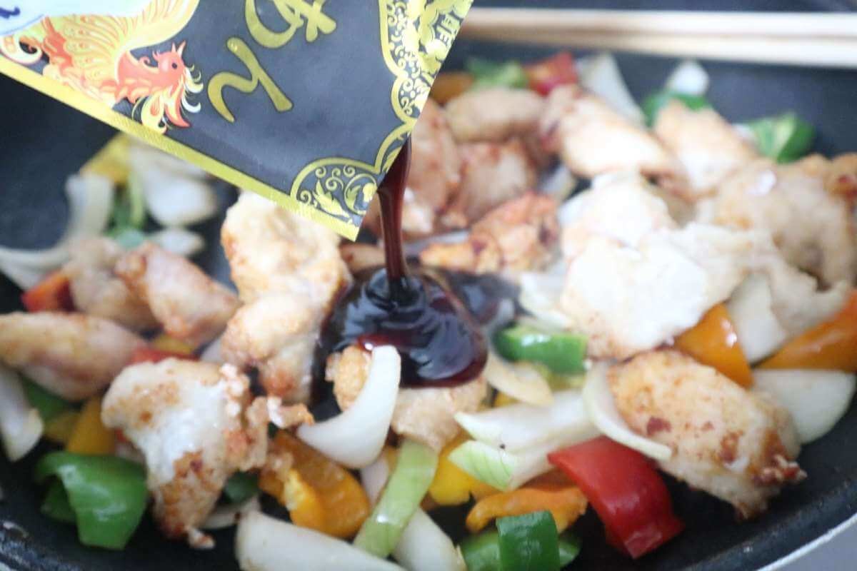 カルディの「黒酢あん」を使えば、本格的な酢豚を失敗なくパパッと作ることができます。