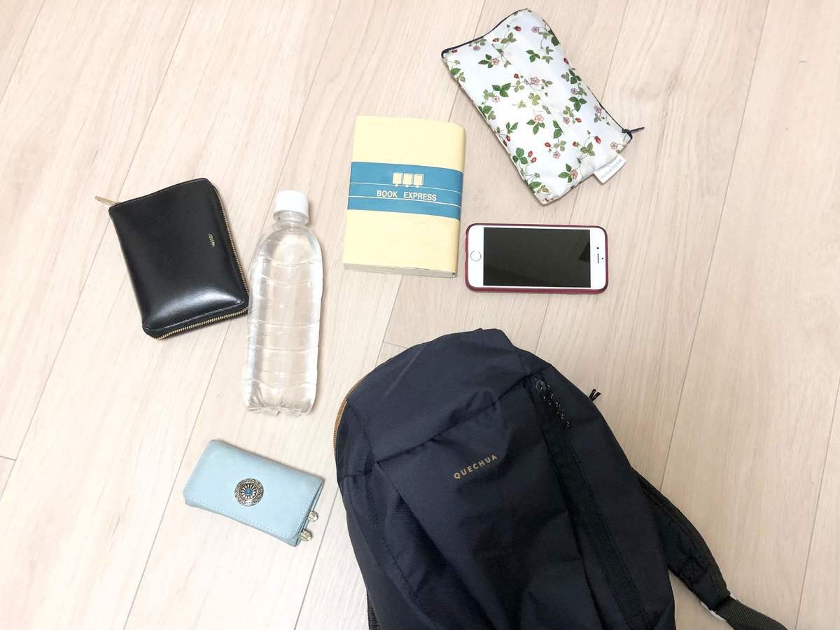 縦長スリムなシルエットに10ℓ、と容量は大きくありませんが、スマホ、飲み物、財布、ハンカチ、ティッシュ、本など、お出かけするのに困らない容量の荷物がすっぽりと入ります。