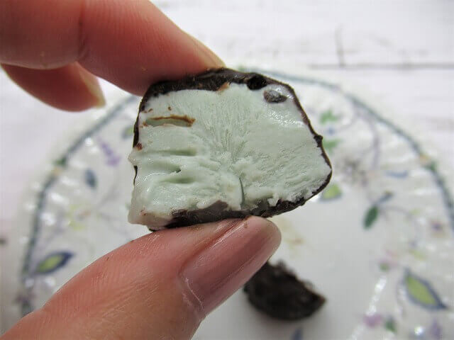 断面をみてみると、ミントアイスがブラッククッキー入りのチョコでコーティングされています。
