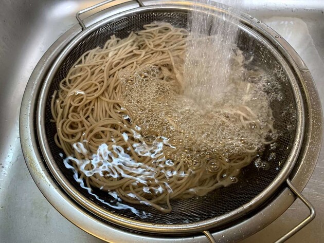 そばがくっつかない裏ワザ②茹でた後は"氷水"でよくぬめりを取る