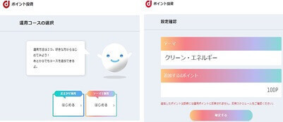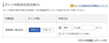 貯まったポイントをすべて使って投資する設定と、一定数だけ投資する設定が選べます。